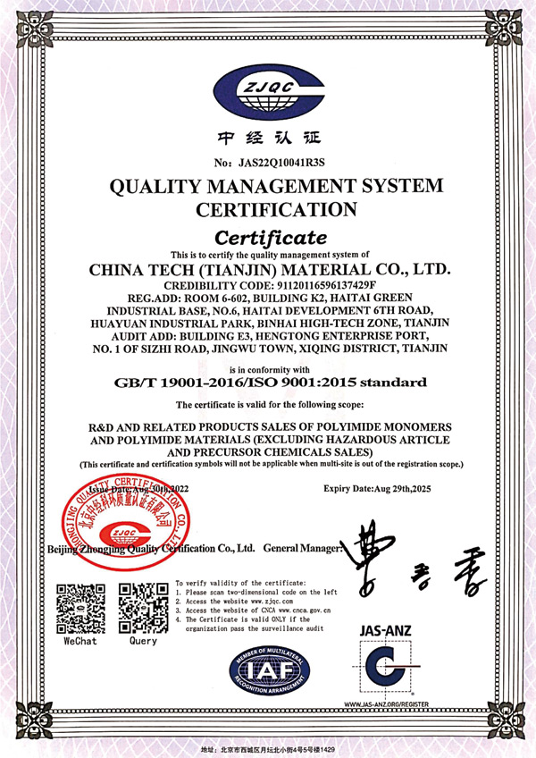 天津眾泰材料科技有限公司(以下簡(jiǎn)稱“眾泰”),是一家“以先進(jìn)功能性聚酰亞胺單體研發(fā)生產(chǎn)為核心,致力于推動(dòng)全球聚酰亞胺材料產(chǎn)業(yè)發(fā)展”為使命的創(chuàng)新型高新技術(shù)企業(yè)。眾泰研制的聚酰亞胺單體目前已廣泛應(yīng)用于無色透明柔性聚酰亞胺薄膜、柔性顯示材料、5G新材料等諸多高科技領(lǐng)域產(chǎn)品的生產(chǎn)。